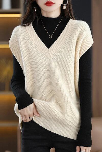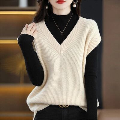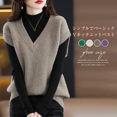 ベスト レディース ニットベスト vネック 無地 タンクトップ トップス 袖なし 秋冬 重ね着 レイヤード ショート丈 ノースリーブ セーター ゆったり シンプル 大人 カジュアル おしゃれ ベーシッ
