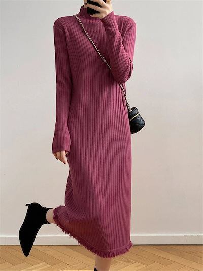 ニットワンピース レディース 秋冬 ロングワンピース ニット ワンピース ロング ハイネック ワンピー 無地 シンプル ミモレ丈 長袖 カジュアル セーター きれいめ 柔らか 暖かい ゆったり