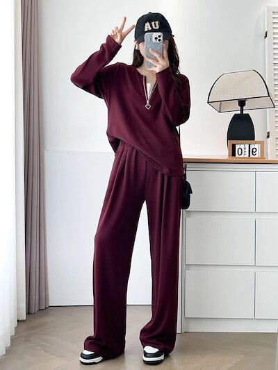 ニット セットアップ レディース カジュアル 秋冬 ニット 2点セット 秋冬ニット 秋冬セット パンツスーツ パンツスーツ セーター パンツ 柔らかい 女性らしい 体型カバー お洒落 大人 かわいい