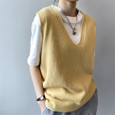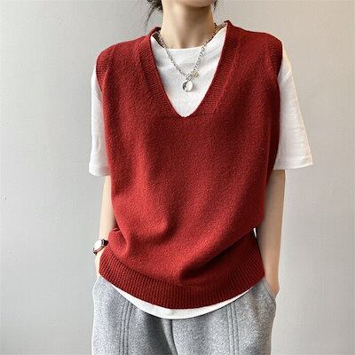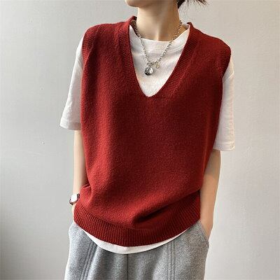 ニットベスト vネック レディース 秋 冬 ニット プルオーバー トップス ニットベスト ショート丈 ノースリーブ 無地 シンプル レイヤード 重ね着 セーター 大きいサイズ カジュアル 大人可愛い