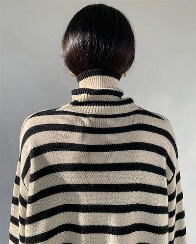 ニット セーター レディース プルオーバー 秋冬 ボーダー ニットカットソー セーター ハイネック 長袖 キレイめ 厚手 通勤 オフィス カジュアル OL 大人可愛い 無地 体型カバー 大きいサイズ