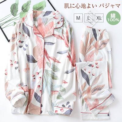 パジャマ レディース 長袖 綿100% パジャマ 春秋 前開き 入院 産後 ルームウェア 部屋着 ナイトウェア 上下セット 綿100 綿 M L LL 冬 春 夏 夏用