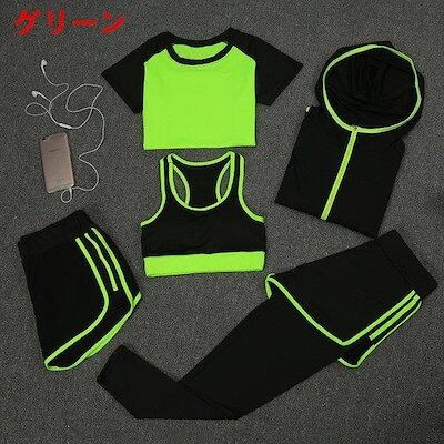 最新型 ランニングウェア トレーニングウェア ジャージ上下5点セット フィットネス ウェア ダイエットウ