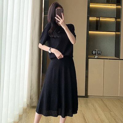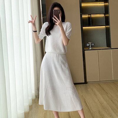 涼しく楽ちんセットアップ 高級感 夏服 2024 新作 ジャージ レディース ニット 上下セット スカート セット