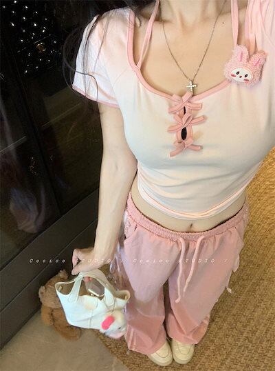 2024秋冬 パンツロング丈ストレートストライプウエストゴムワイドハイウエストゆったり 脚長効果美脚効果細見え春カジュアル黒白韓国系ファッションレディースサイドお出かけおしゃれ かわいい衣装トラック