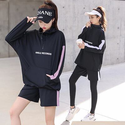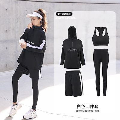 ファッションヨガウェア セットアップ ヨガトップス 【4点セット】春夏 長袖 ショーツ トップス タンクトップ レギンス 速乾 運動ズボン ホット ジャージ ヨガパンツ レディース 上下セット 運動セ