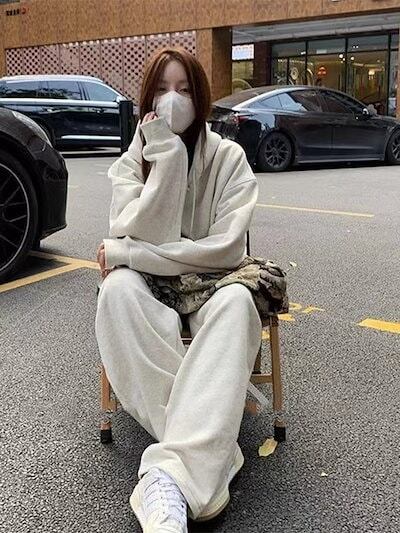 2024 秋冬 2点セット トップス フード付き 羽織り ショート丈 長袖 大人可愛い カジュアル上下ボトムス ストレート系ファッション冬 フル ルーズ サイドゆったりサイズワイドシルエットリラック