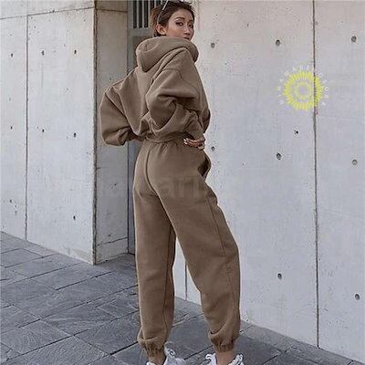 セットアップ レディース 上下セット パーカー スウェットパンツ 2点セット チュニック 着やせ 大人 カジュアル ボトムス フード付き