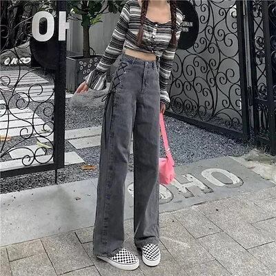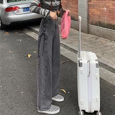 大人気 デニムパンツ 秋 新作 ボトムス ゆったり カジュアルシルエット レッグロングパンツ 学生 ファッション系 レディース 脚長効果 美脚効果