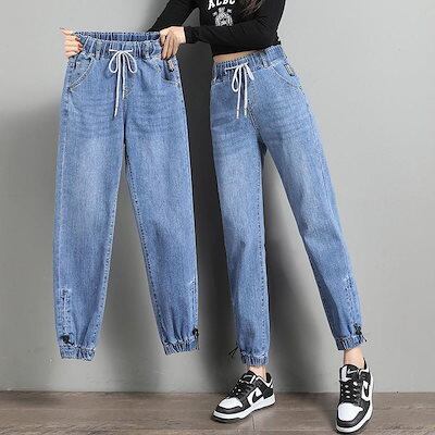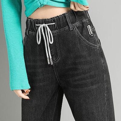 大人気 デニムパンツ 秋 新作 伸縮性のあるウエスト 着痩せ ジョガーパンツ サルエルパンツ ロングパンツ 長ズボン レディース 脚長効果 美脚効果