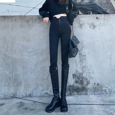 大人気 デニムパンツ 秋 新作 ハイウエスト ジーンズ ブルー ブラック 着痩せ 体型カバー ジーンズ ハイウエスト 体型カバー レディース 脚長効果 美脚効果