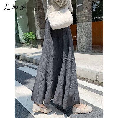 2024 人气 秋 新作 プリーツスカート 黒スカート ハイウエスト ミディアムAニットスカート ロングスカート 百掛け 韓国ファッショ 着痩せ 韓国ファッション
