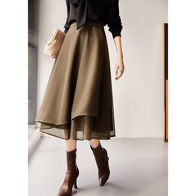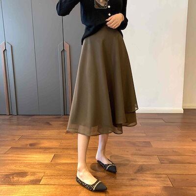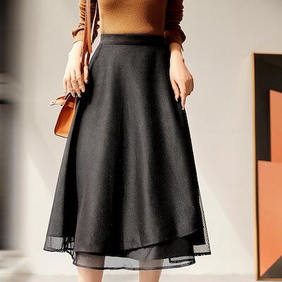 2024 人气 秋 新作 ロングスカート 春と秋 メッシュ ミドル丈スカート イレギュラー 薄手 半身スカート Aラインスカート 韓国ファッション