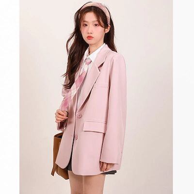 2024 人気 秋 ジャケットピンクのブレザー女性春秋ゆったり純欲風韓国版ゆったり気質学生ブレザーファッション