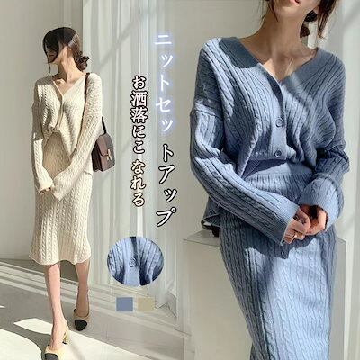【2枚購入で 2oo円OFF!】2024秋冬新作 おしゃれ シンプル レディースセットアップ ニットカーディガン スカート 二点セット 気質 涼しく楽ちんセットアップ セット