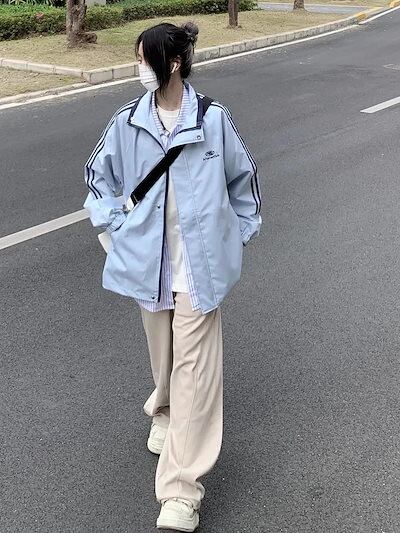 2024 秋 韓国 かわいい レディース フード付き アウター ブルゾン お出かけ 長袖セクシーシルエットトップスサイド冬カジュアルファッション系サイズお出かけフル丈トラック