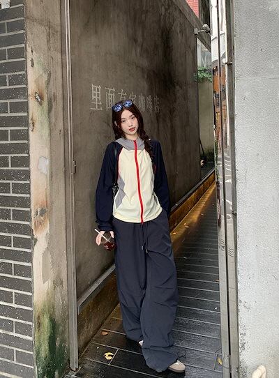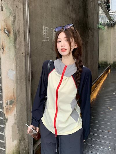 2024秋冬アウター パーカー ジップ チャック フード付き コントラスト 秋 おしゃれ かわいい 韓国ファッション レディース お出かけ
