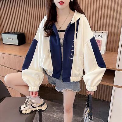 【本日限定】韓国ファッション パーカー レディース 秋の色合わせ2024新型キャップ付きパーカーカーディガンゆったりミリタリートップス アウター ジップパーカー