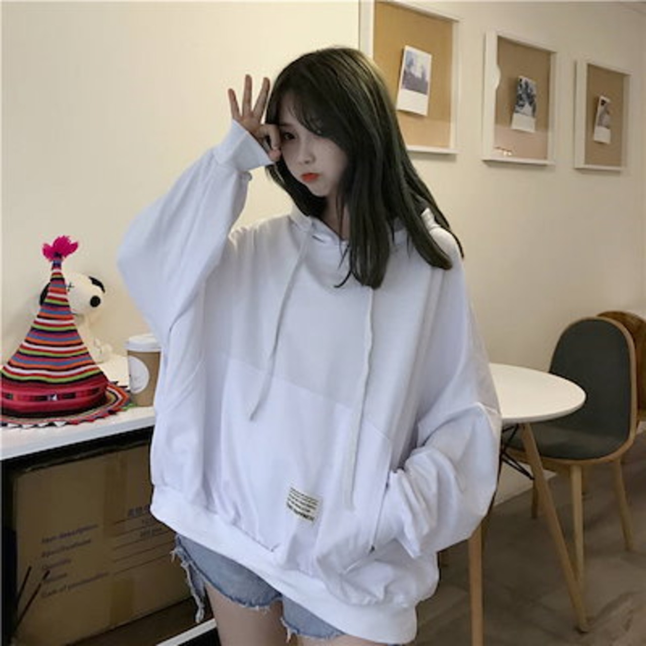 スウェット 前開き 体型カバー レディース 長袖 トップス パーカー 韓国ファッション チュニック