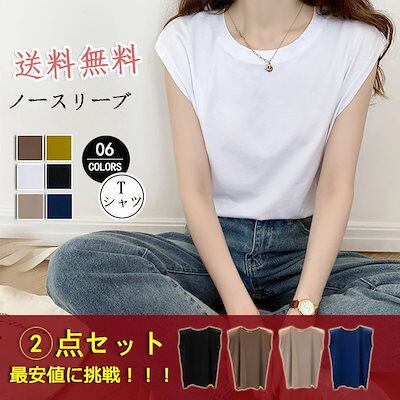 【二点セット】 シンプル 気質 半袖 ノースリーブ Tシャツ トップス 体型カバー 着痩せ 韓国ファッション 百掛け 大きめサイズ 純綿 tシャツ レディース