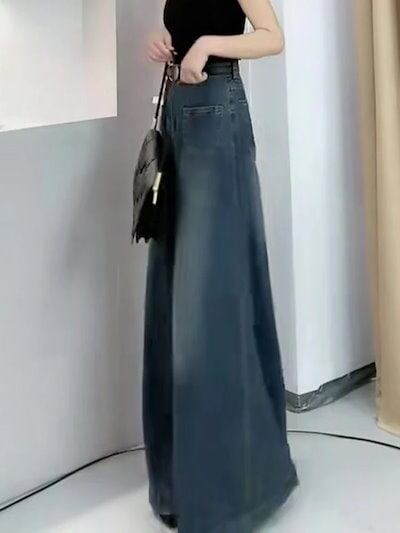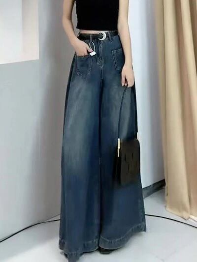 デニムワイドパンツ 秋新作 復古 レトロジーンズ ゆとりがある ストレートワイドパンツ 韓国ファッション 百掛け やせて見える