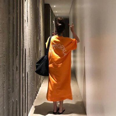 Tシャツワンピースロング 夏服 韓国ファッション レディース大きいサイズ ゆったり 着痩せ