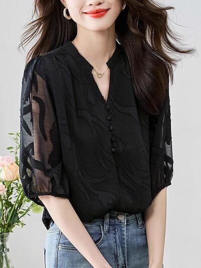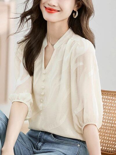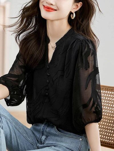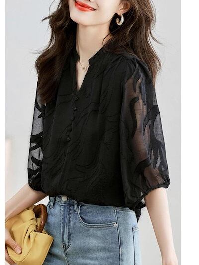 使える!シフォンブラウス 母の日 シアーシャツOL 通勤 韓国ファッション ブラウス レディース シフォン シャツ ロング着痩せ シフォン/トップス