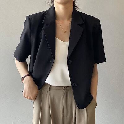 サマージャケットアウター大きいサイズテーラードジャケットジャケット春夏半袖ショート丈おしゃれカジュアルレディース着痩せファッションビジネス通勤フォーマル入学式半袖