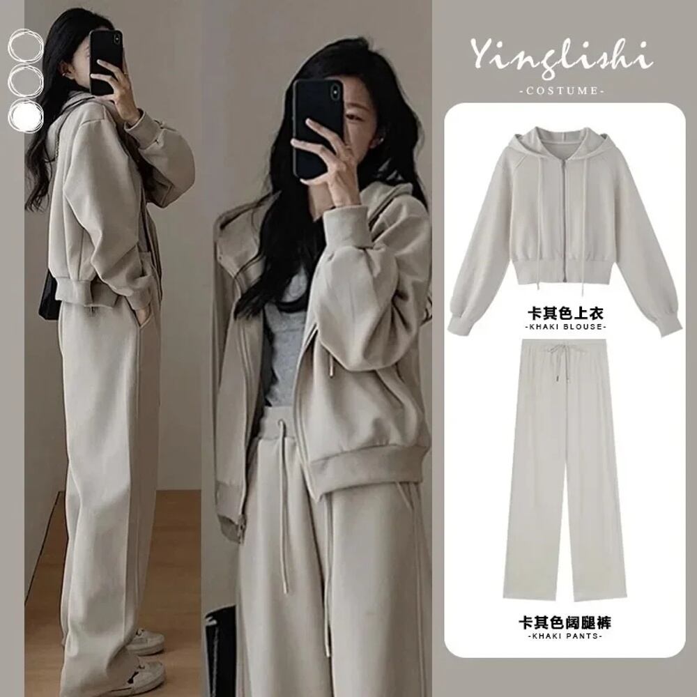 女性用フード付きスウェットシャツとパンツのセット,ジッパー付き,ルーズ,ソリッド,韓国ファッション,y2k,特大,秋冬,2個 パーカー ジャージ y2k T240908202630_02
