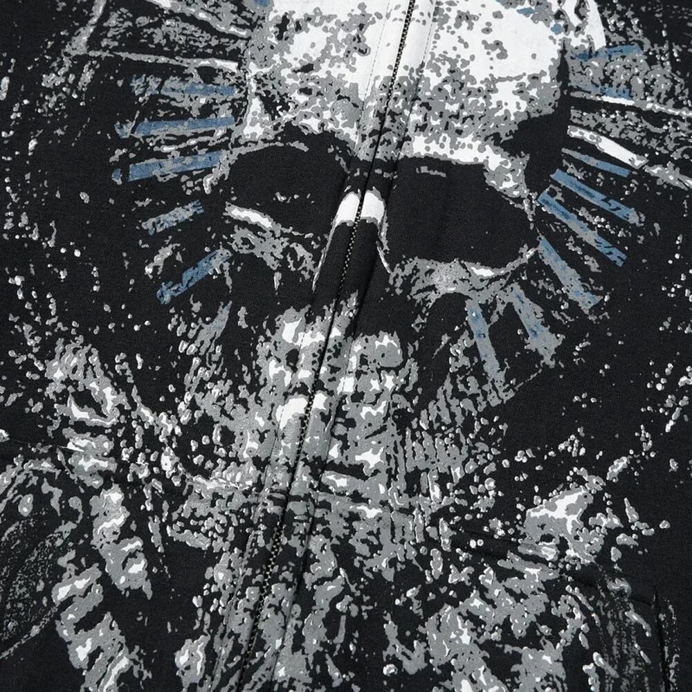女性用長袖フード付きスウェットシャツ,スカルプリント,ゴシックトップ,90年代の古着,婦人服,ストリートウェア,y2k,2000s,春,秋 パーカー ジャージ y2k T240908202658_01