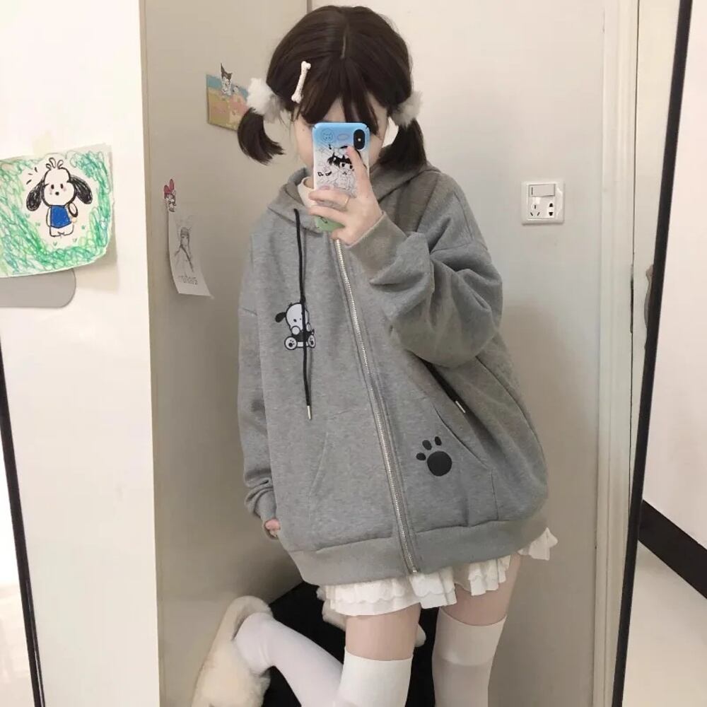 女性用長袖パーカー,フード付きコート,y2k原宿,カジュアルスウェットシャツ,かわいい,カワイイ,甘い,灰色,日本,新しい,秋,2024 パーカー ジャージ y2k T240908202815_01