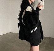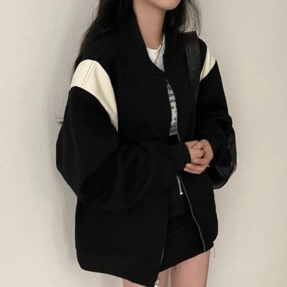 女性のヴィンテージジップアップパーカー,原宿ジャケット,スウェットシャツ,黒,k-pop服,韓国のファッションストリートウェア,y2k パーカー ジャージ y2k T240908202828_01