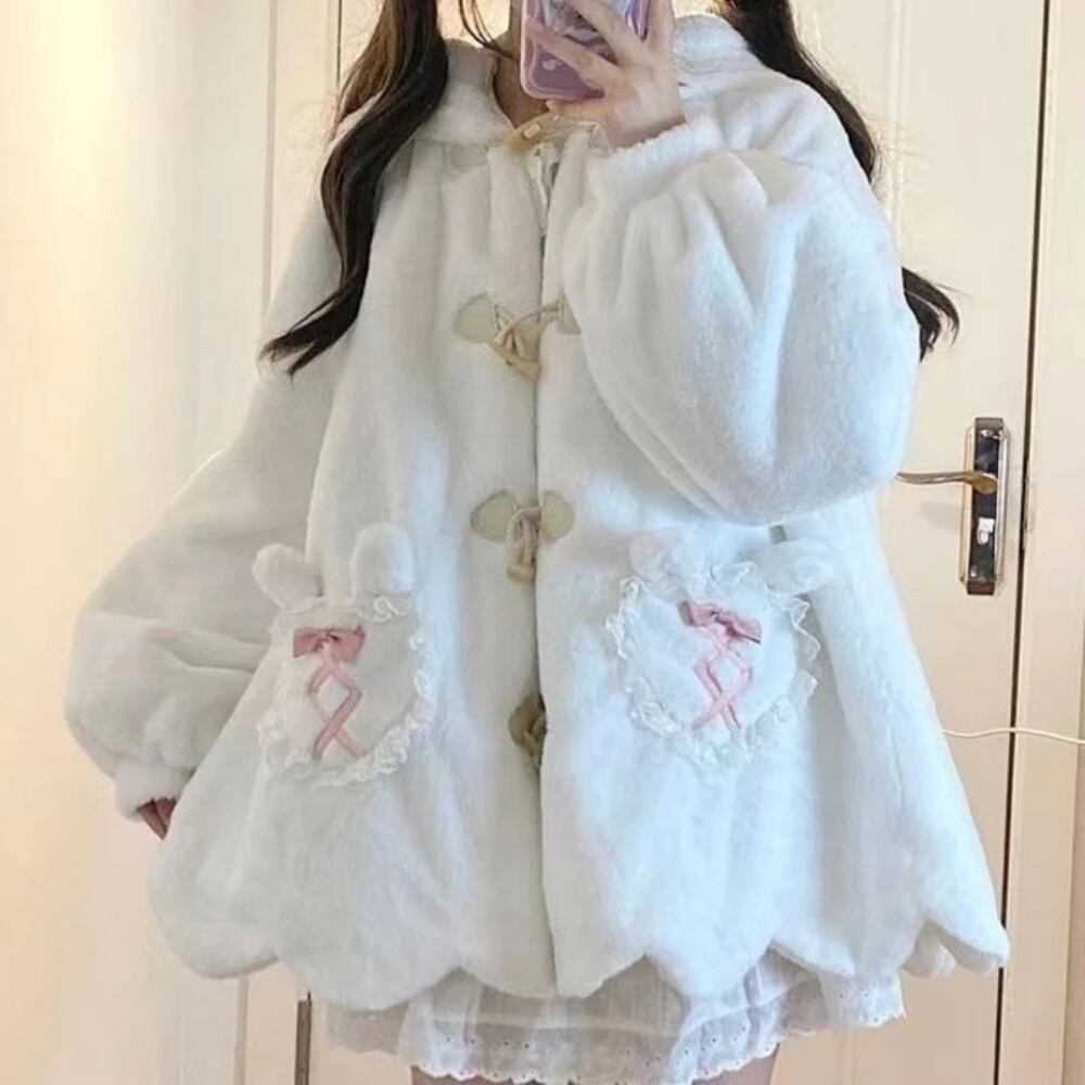 女性用ラムベルベットジッパーパーカー,原宿ゴシックコート,暖かいジャケット,綿の服,かわいいバニーギア,新しい パーカー ジャージ y2k T240908202917_03