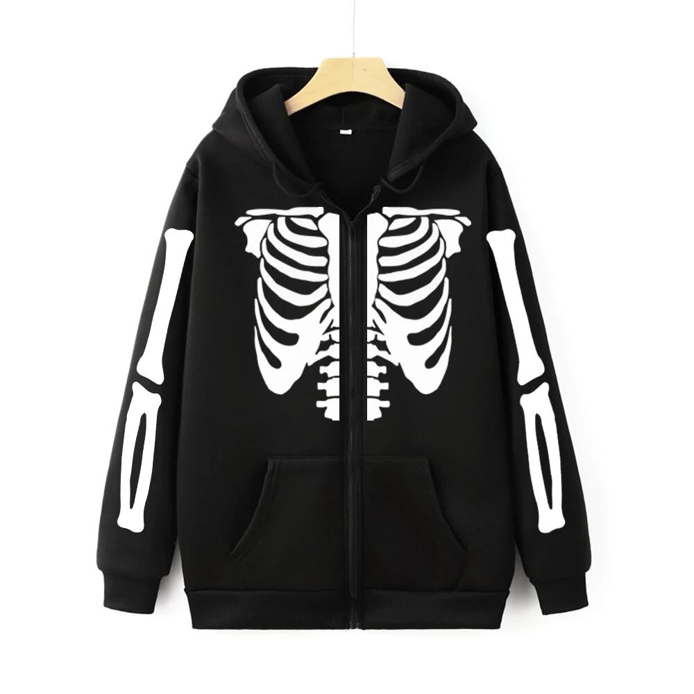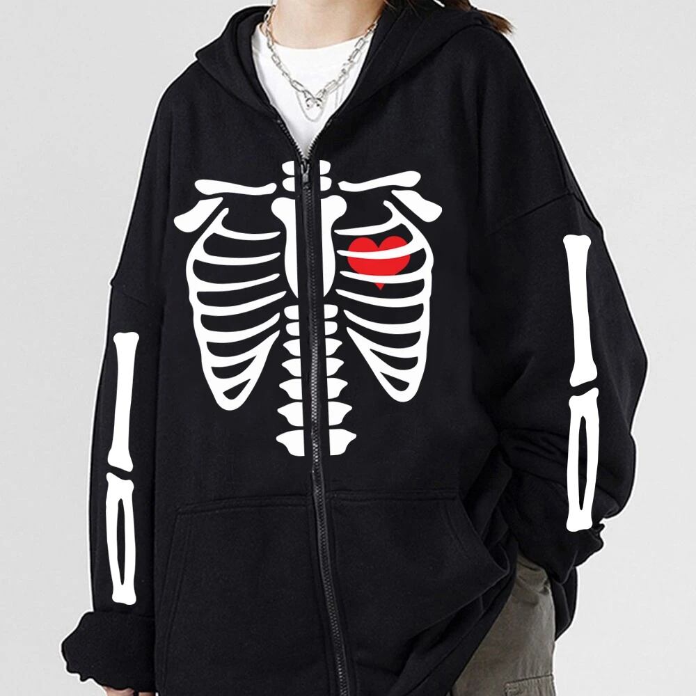 女性のためのヴィンテージの骨格プリントジッパースウェットシャツ,ゴシックボーンプリント,ユニセックスストリートウェア,ジッパー付き,原宿スタイル,y2k,秋 パーカー ジャージ y2k T240908203047_08
