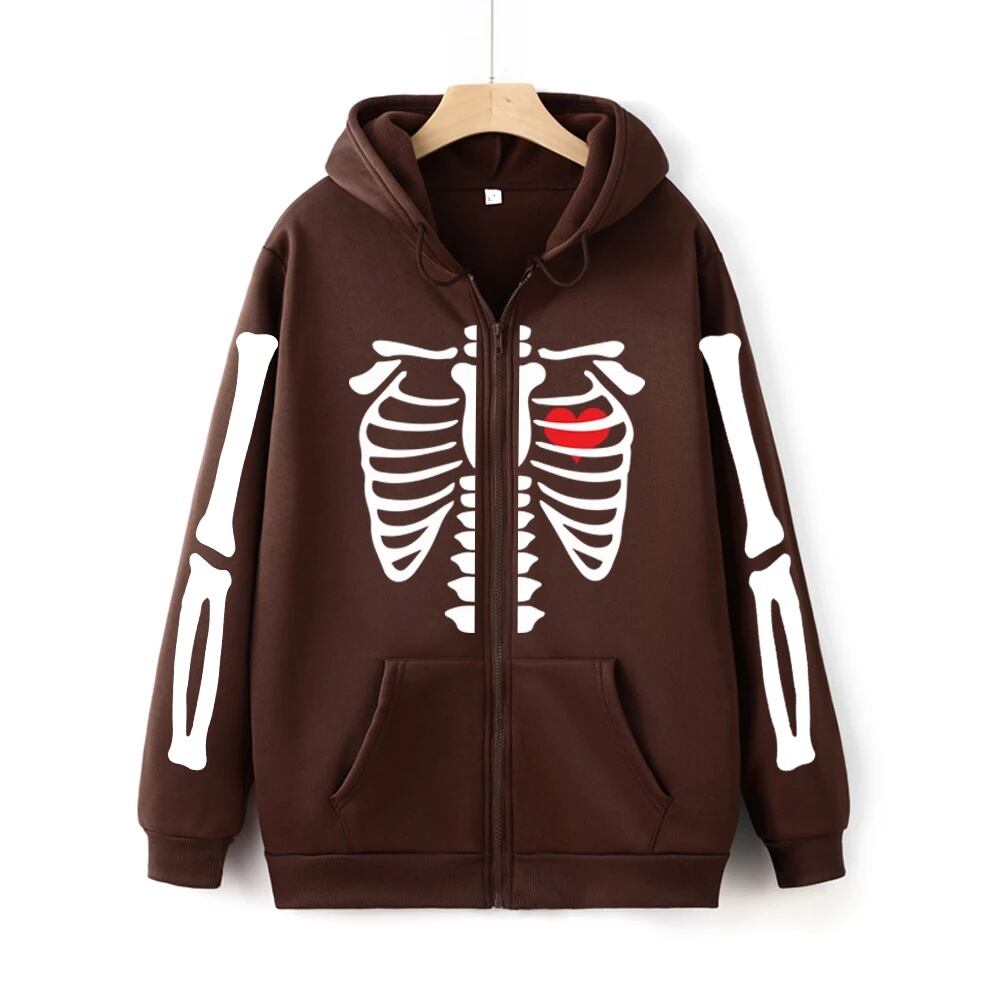 女性のためのヴィンテージの骨格プリントジッパースウェットシャツ,ゴシックボーンプリント,ユニセックスストリートウェア,ジッパー付き,原宿スタイル,y2k,秋 パーカー ジャージ y2k T240908203047_09