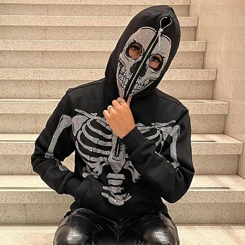 Y2K-スカル,ラインストーン,ジッパー,フーディ,グランジ,特大スウェットシャツ,パンク,長袖,婦人服を着た女性用スウェットシャツ パーカー ジャージ y2k T240908203110_06