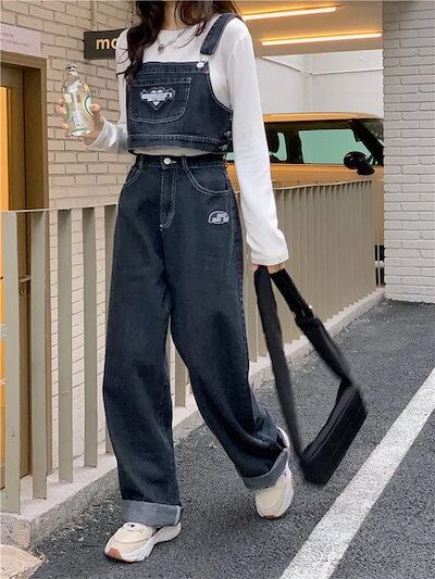 2024 春夏 セットアップ ショート丈トップス ファッション ジーンズ シルエット ハイウエスト ワイドパンツ ストレートパンツ ハイウエスト こなれ カジュアル メンズライクサイズセットアップ