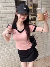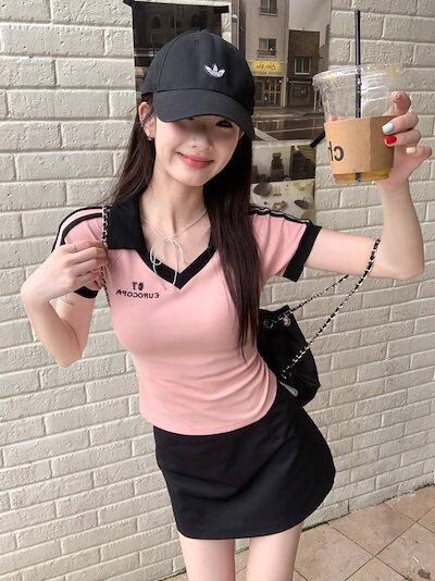 2024 春夏トップス 大人可愛い半袖 Tシャツ 韓国 ラウンドネックロゴスリム かわいいへそ出し ショート おしゃれスリーブ カジュアルサイドコーデ丈 ファッション系レディースストリートお出かけ T