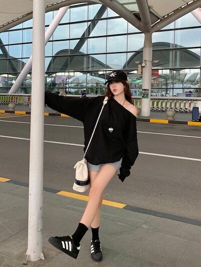 2024秋冬トップス 長袖 肌見せ 無地 ゆったり 細見え 秋冬 黒 おしゃれ かわいい 韓国系ファッション レディース お出かけ