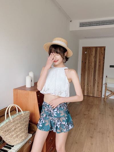 2024 水着 ビキニ 韓国ビキニ 小胸 体型 黒 ブラック カバー水着 韓国水着 タンキニ ハイウエスト スイムウェア 美脚 脚長 スタイルアップ 大人女子