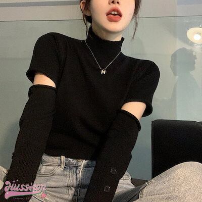 2024春夏 韓国トップス カジュアル かわいい 半袖 トップス きれいめ セクシー 大人可愛い レトロハイファッションスタンドきれいめ 色っぽ きれいめ カジュアルフェミニンお姉さん上品レディース