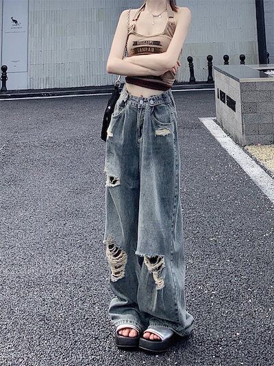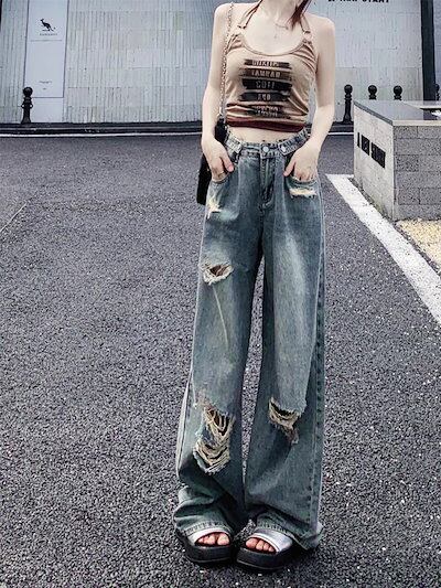 2024夏 韓国 デニムパンツ ボトムス ジーンズ ファッション系スタイル ゆるダボ ジーンズ シルエット加工 カジュアル メンズライク