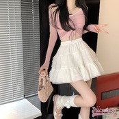 2024春夏 スカート カジュアル ガーリー 着回し ボトムス 美脚 脚長 スタイルアップ風 女っぽ 美シルエット ハイウエスト丈