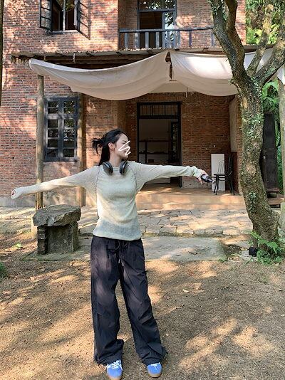 2024 春 透け感UP tシャツ ファッション 韓国 トップス デザイン カットソー イラストエンジェル 長袖丈パンツ