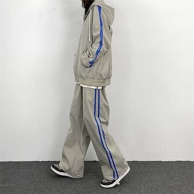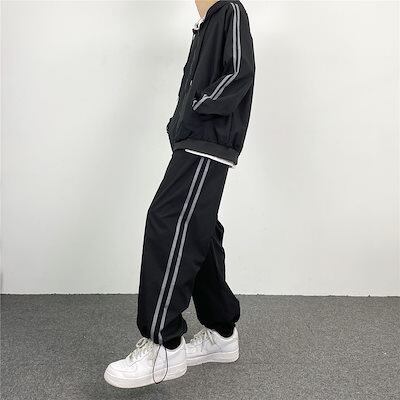 2024 春秋 2点セット ユニセックス トップス お出かけ 羽織り ショート丈 セットアップ ルーズ サイド ボトムス ストレート系冬 ゆったり サイズワイドシルエット リラックストラック