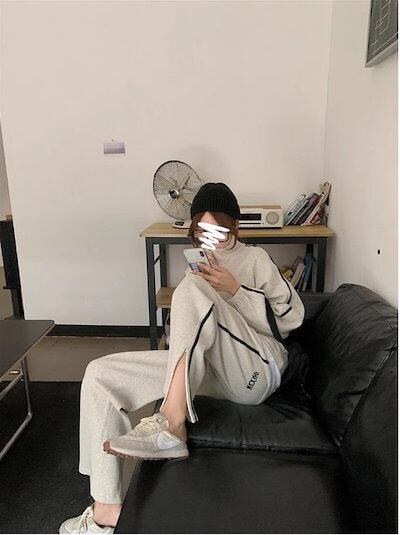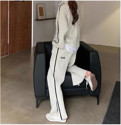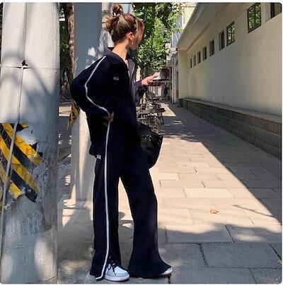 2024 春秋 2点セット トップス お出かけ 羽織り ショート丈 セットアップ フルラウンドヘム ルーズ サイド ボトムス ストレート系冬 ゆったり サイズワイドシルエット リラックストラック