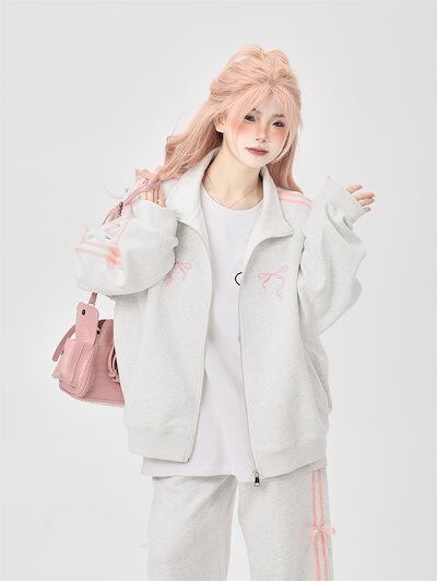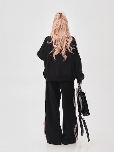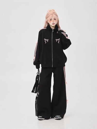 2024 春秋 2点セット トップス お出かけ 羽織り 韓国 レディース フルラウンドヘム ルーズ サイド ボトムス ストレート系冬 ゆったり サイズワイドシルエット上下リラックストラック2