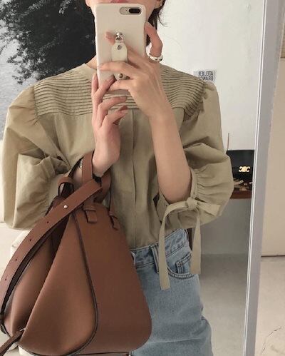 2024秋冬トップス シャツ リボン ラウンドネック プリーツ 長袖 ゆったり 秋 白 茶色 おしゃれ かわいい ガーリー キュート 甘め 韓国ファッション レディース お出かけ