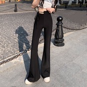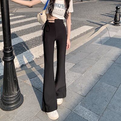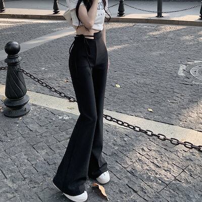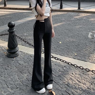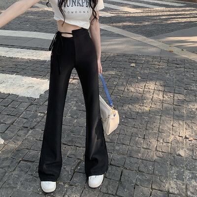 2024 春秋 パンツ モップパンツ ロングパンツ ワイド ハイウエスト 脚長効果 美脚効果 細見え 夏 カジュアルフィット かわいい 韓国系ファッションサイド レディース お出かけ1