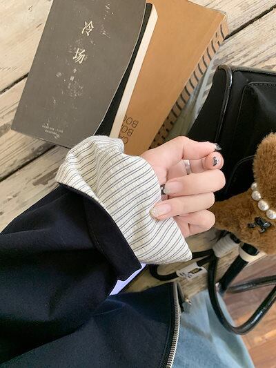 2024 秋冬アウター ジャケット ショートコート リバーシブル ストライプ 長袖 ジップ チャック 襟 秋 白 黒 おしゃれ かわいい 韓国ファッション レディース お出かけ